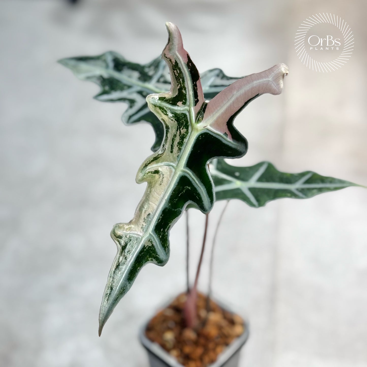 Alocasia Black Velvet Pink Variegated-from corm grown(斑入り優良株)