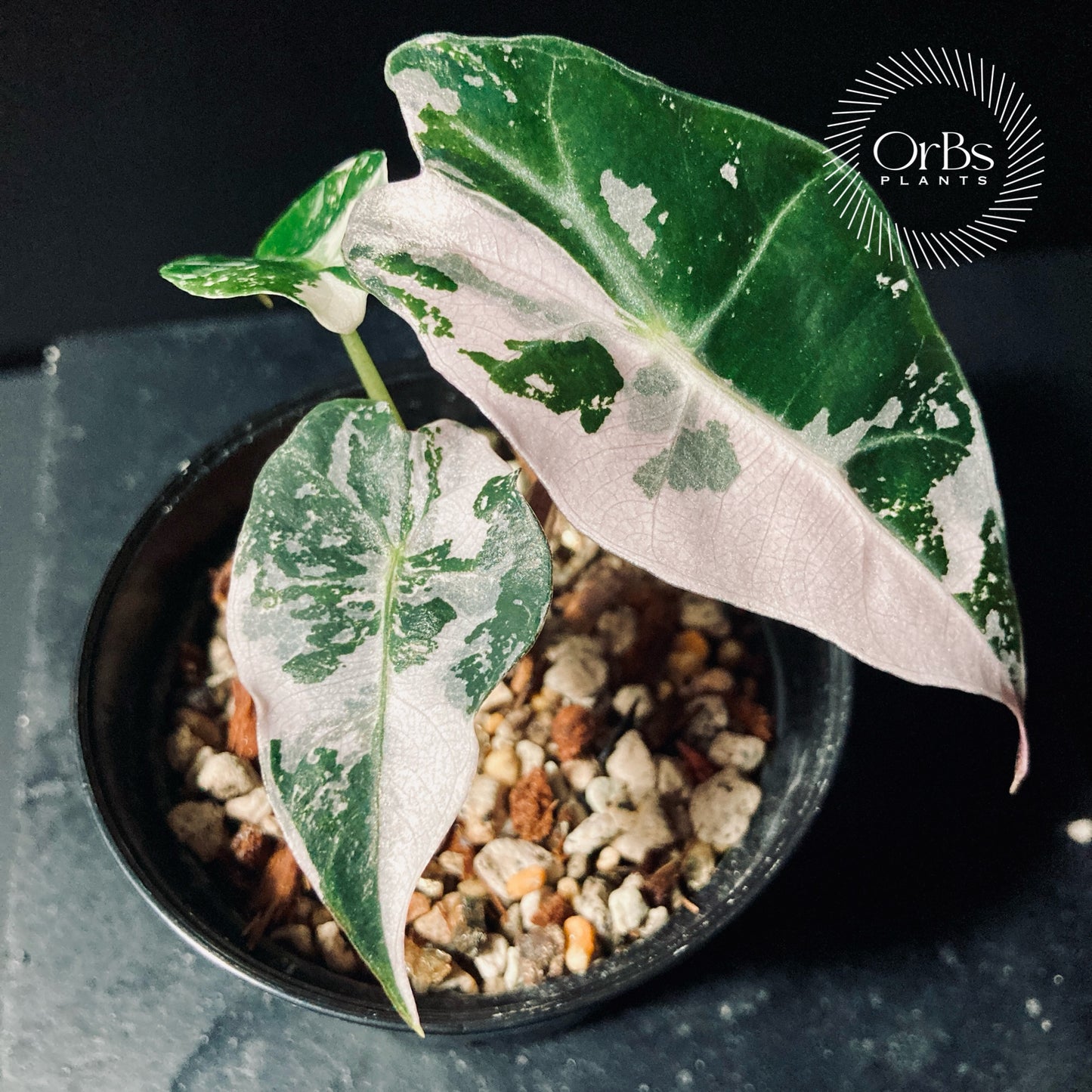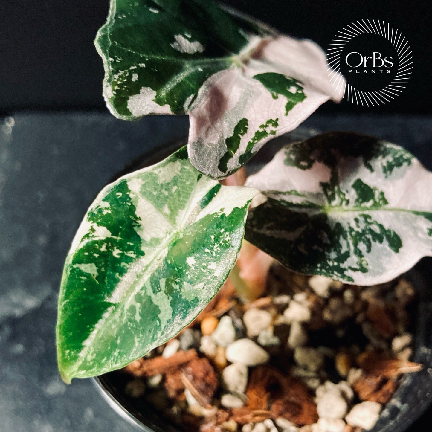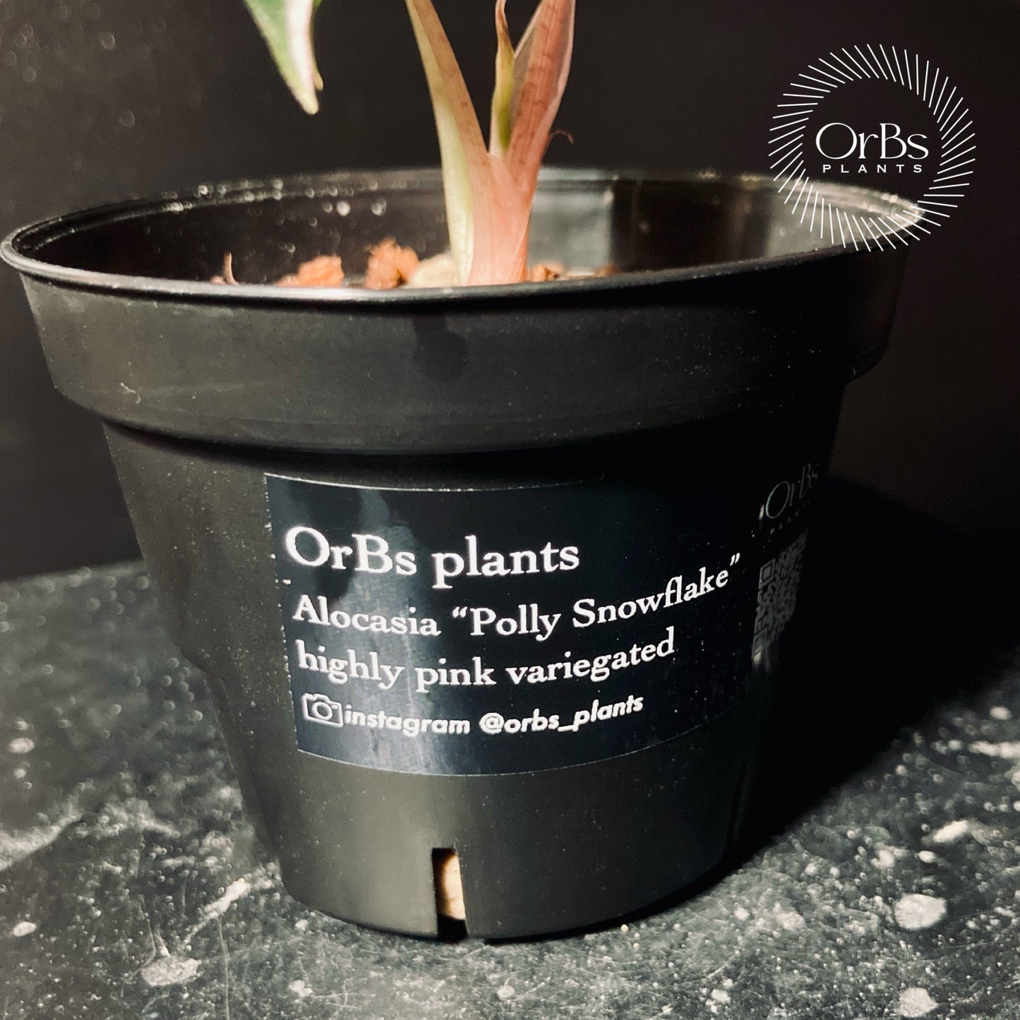 Alocasia “Polly” Snowflake pink variegated